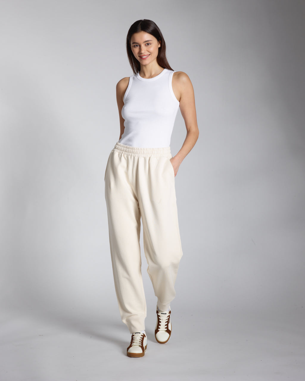 Crafted from super soft 100% organic cotton French terry, these women’s joggers are designed for everyday comfort with a premium feel. The cuffed hems create a relaxed yet secure fit while maintaining durability over time. Finished with an organic cotton internal waistband, reinforced with biodegradable natural rubber elastic, and a wide organic cotton herringbone tape tie for a considered final detail.